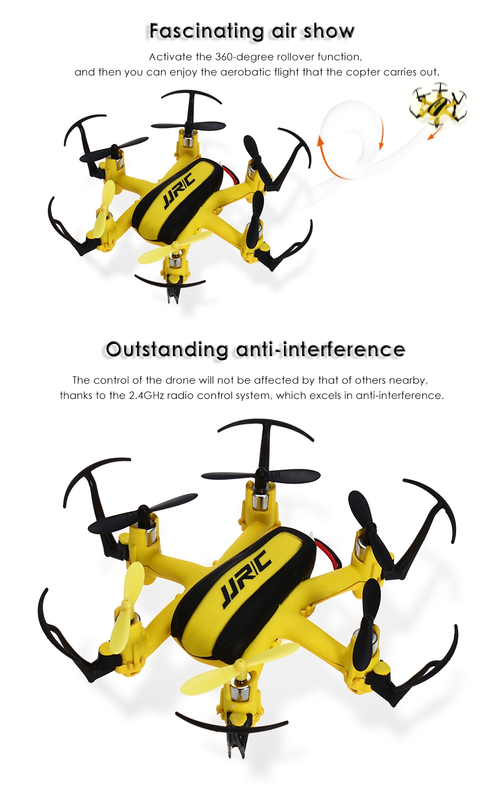 It can go up / down / back / forth, and turn left / right. More importantly, you can enjoy the aerobatic 360-degree eversion.