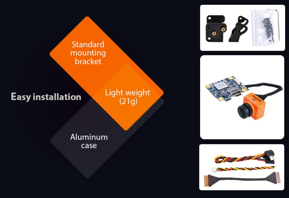 The camera itself is 22x20mm, coming in slightly smaller than the RunCam Swift Mini. It looks like they could reduce the size even more due to moving some processing back to the PCB. It provides a 130° FOV with a 2.5mm lens which is standard across most of the newer RunCam FPV cameras. They unfortunately do not list anything about the image sensor, however, we can speculate it would be running a 1/3" SONY Super HAD II CCD, similar to the Swift 2 and Swift mini. If this is the case, there is not much new here and that's honestly a good thing.